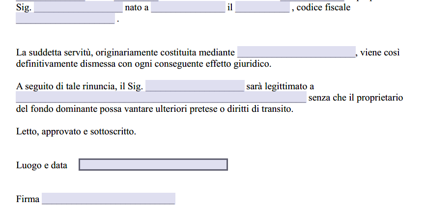 Scrittura Privata Rinuncia Servitù di Passaggio PDF Editabile e Compilabile